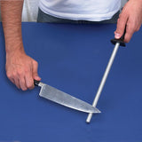Aiguise facilement tous les couteaux émoussés en quelques secondes avec peu de pression. Idéal pour le ménage, la boucherie, la restauration et la pêche. Durée de vie exceptionnelle. Noyau en acier inoxydable galvanisé avec surface diamantée et poignée en polycarbonate avec anneau de suspension. Grain 600 (25 microns)