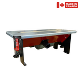 Notre ponceuse à tambour Flatmaster est dotée d'un cadre en acier dont le dessus est fixé au cadre, une configuration très durable et solide. La plus grande différence entre les ponceuses de 24 et 30" et celles de 18" est la vitesse d'avance. Le Flatmaster de 18" est doté d'un tambour de 2" de diamètre, offrant une vitesse d'alimentation d'environ 10' par minute. Comme avec notre ponceuse V-Drum, l'enlèvement de matière dépend de la taille du grain installé par l'utilisateur et la configuration initiale est la même. Avec votre grain le plus fin sur le tambour, celui-ci doit être installé de manière à ce qu'il repose juste en dessous de la table lorsqu'il ne tourne pas. Il est plus facile de le voir si vous posez une règle droite à travers l'ouverture. Des instructions d'installation complètes sont incluses avec la ponceuse ou peuvent être trouvées dans notre catalogue et sur notre site Web dans les sections FAQ. Le tambour de 18" nécessite un moteur minimum de 1/4 HP avec un cadre 48 ou 56 qui tourne entre 1 725 et 1 750 tr/min, bien que tout moteur qui tourne entre 1 725 et 1 750 tr/min fonctionnera. Le tambour 24 : nécessite un minimum de 1/2 HP. moteur qui tourne entre 1 725 et 1 750 tr/min. Pour un moteur qui fonctionnera avec cette ponceuse, cliquez ICI - tous les moteurs achetés chez nous nécessitent . Une poulie est automatiquement incluse dans le kit pour le moteur. Poulie 5/8". Choisissez sur commande l'alésage de votre poulie dont vous avez besoin, en fonction de la taille de l'arbre moteur. Vous pourrez changer de poulie ultérieurement, mais des frais supplémentaires s'appliqueront. Les moteurs peuvent être achetés neufs chez Harbor Freight ou dans n'importe quel magasin de fournitures agricoles. Les moteurs d'occasion sont souvent disponibles à moindre coût sur E-bay, Kijiji, petites annonces, vide-greniers, ateliers de réparation de climatiseurs, ventes aux enchères ou garages amis. Nous avons même parfois demandé à des clients d'acquérir des moteurs gratuitement. Vous avez encore des questions ? Consultez notre page FAQ et nos démos en ligne pour plus d'informations. Cette unité n'inclut pas les clôtures.