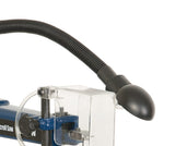 le matériau coupé peut être tourné librement en arcs serrés, contrairement à toute autre scie électrique. Le moteur à courant continu offre des vitesses de fonctionnement variables, de sorte que l’ajustement de l’action de coupe de la lame à différents matériaux se fait facilement en tournant simplement le cadran. La gorge de 16" de la scie et la grande table en aluminium usiné offrent un accès et une stabilité supplémentaires lors du sciage de gros stocks. La table s'incline également jusqu'à -45° pour réaliser des coupes en angle. La machine utilise des lames à extrémités épinglées ou lisses de 5 pouces de long. Comprend une base en fonte pour une plus grande stabilité, une lampe de travail, une paire de porte-lames sans goupille et une lame en bois sans goupille. L'arbre flexible à grande vitesse (disponible séparément) se fixe à l'arbre du moteur pour le travail rotatif.