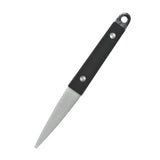 - Poignée profilée en plastique fendue qui est épinglée de chaque côté de la lame.
